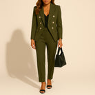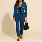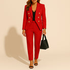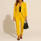 This two-piece outfit offers a clean silhouette for both business and casual settings. The notched lapel blazer pairs perfectly with the slim-fit trousers for a coordinated appearance.