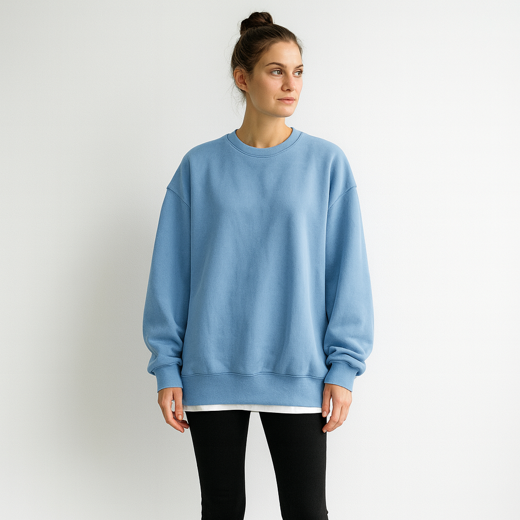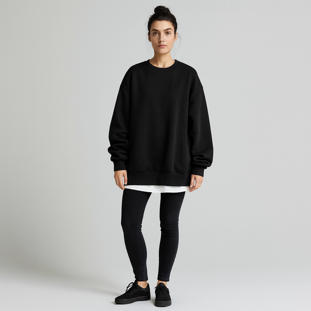 This oversized sweatshirt balances a straight cut with volume for layered everyday comfort. Designed to be worn over slim trousers or leggings, it gives extra length without adding complexity.