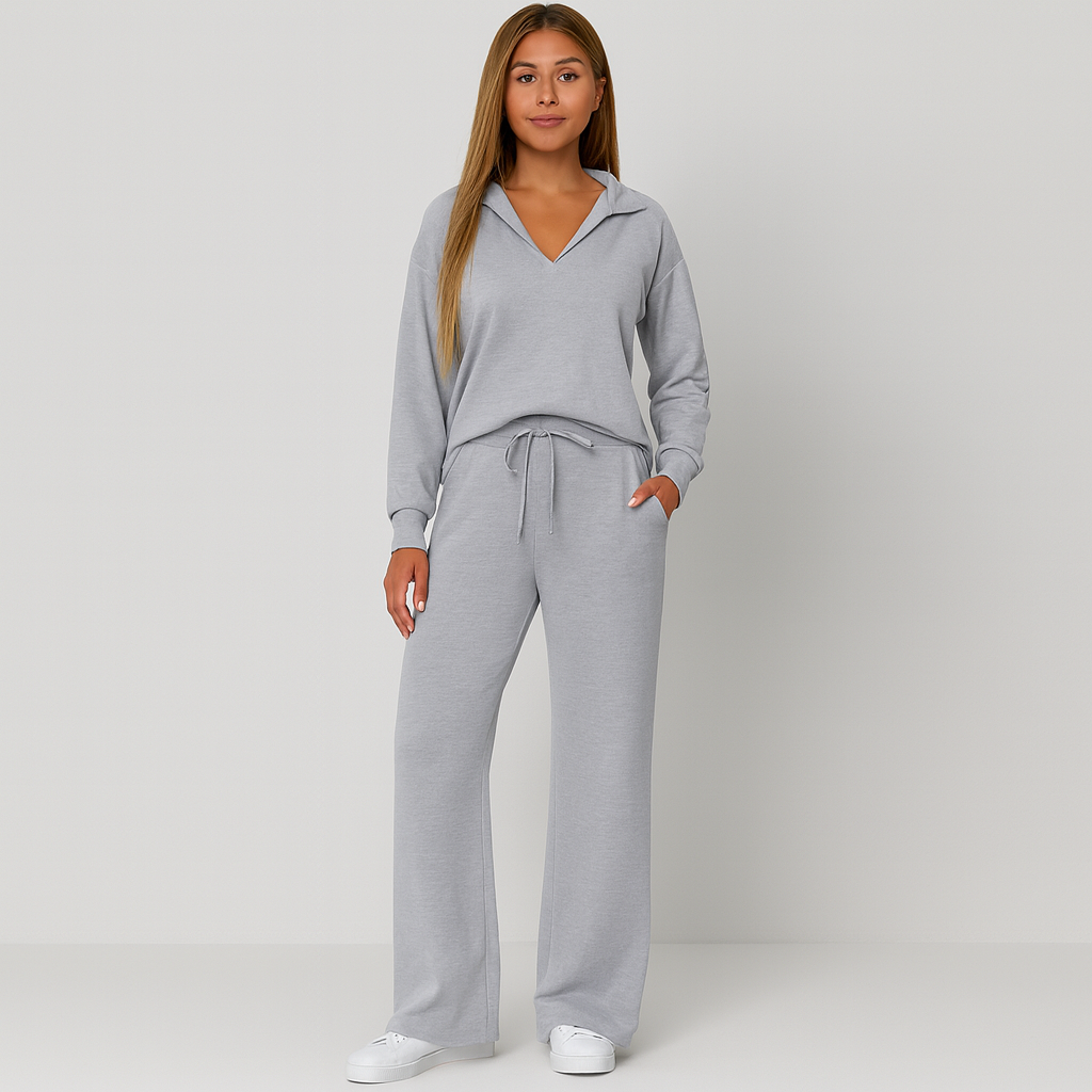 Ladies Loose Fit Loungewear Set | Zipper Collar
